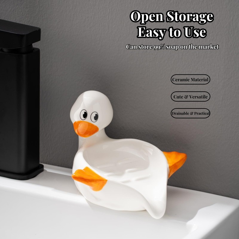 - Cheerful Duck Design: Add a touch of whimsy to your bathroom decor with the delightful duck-shaped design of this soap dish, showcasing vibrant colors, a smooth texture, and compatibility with various bathroom styles