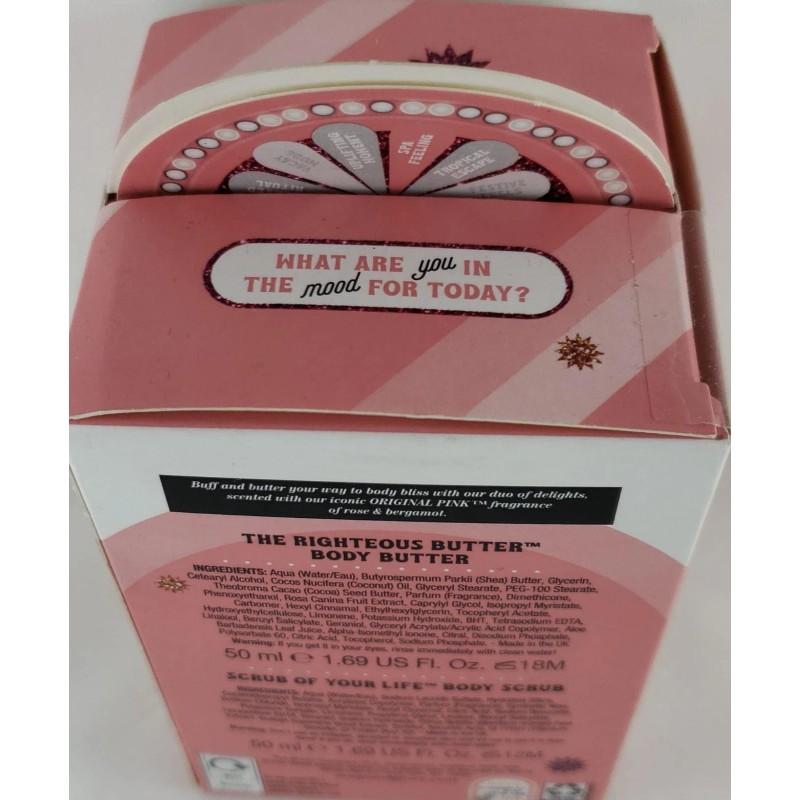 Buff and butter your way to body bliss with our duo of delights, scented with our iconic ORIGINAL PINK fragrance of rose & bergamot.
