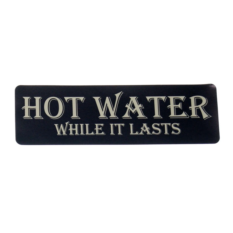 - Soap decal measures 4 1/2" x 1 1/2", Fresh Hand Towels Free measures 6" x 2" and Hot Water While it Lasts measures 8" x 2 1/2".