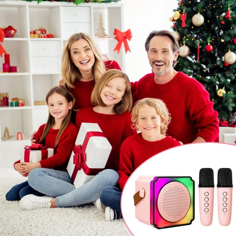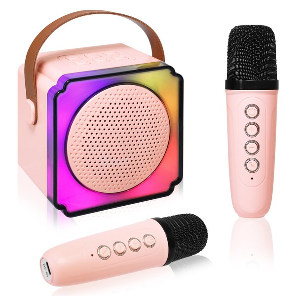 SOARFLY Karaoke Machine Children, Karaoke Machine for Children with 2 Microphones, Karaoke Bluetooth Speaker Children, with LED Light and Voice Change Effect, Gifts for 3-12 Years Girls