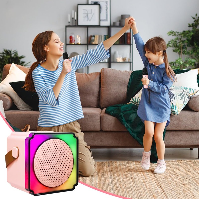 • Easy connection and versatile use: With the innovative Bluetooth technology, children can easily pair their karaoke machine with smartphones or tablets. This karaoke machine with 2 microphones also offers the possibility to play music from TF cards and USB sticks. Whether indoors or outdoors, the children's karaoke with microphone allows little ones to sing and have fun anywhere - perfect for any occasion!