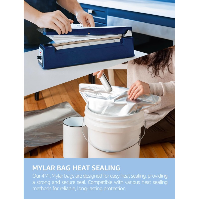 - Protective & Efficient: Our mylar bags are designed to block moisture, light, and odors, preserving food freshness longer than standard storage methods. The sleek silver design ensures contents are kept private and secure.