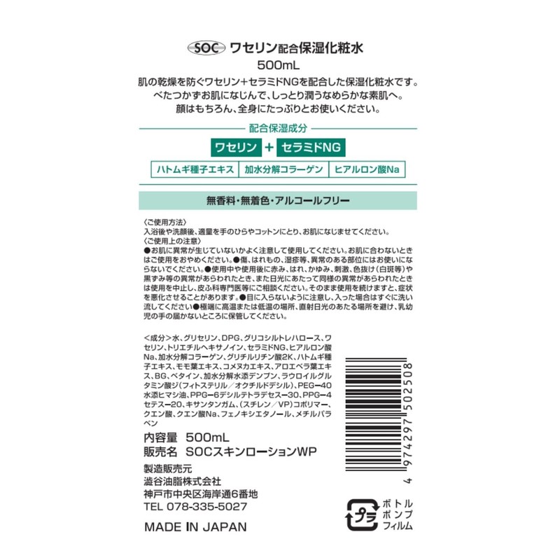 This moisturizing lotion with vaseline and ceramide formula conforms to the skin without stickiness, and provides a moisturizing barrier while preventing skin from drying out. In addition, 4 types of Japanese plant extracts lead to moisturizing skin. The large capacity type can be used for a wide variety of surfaces as well as your face.