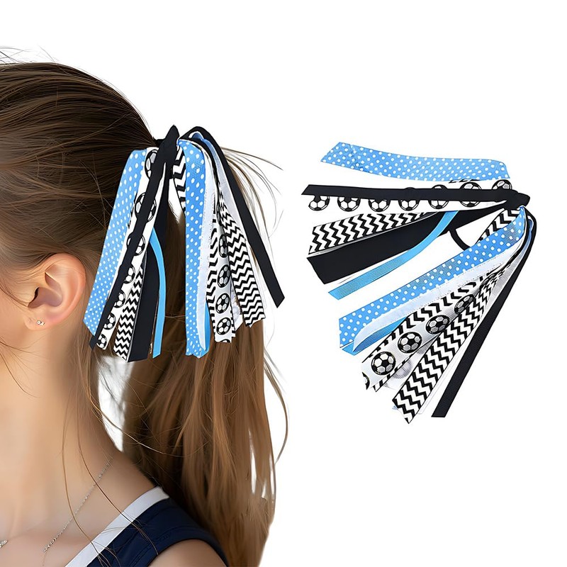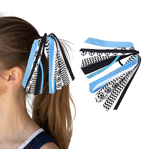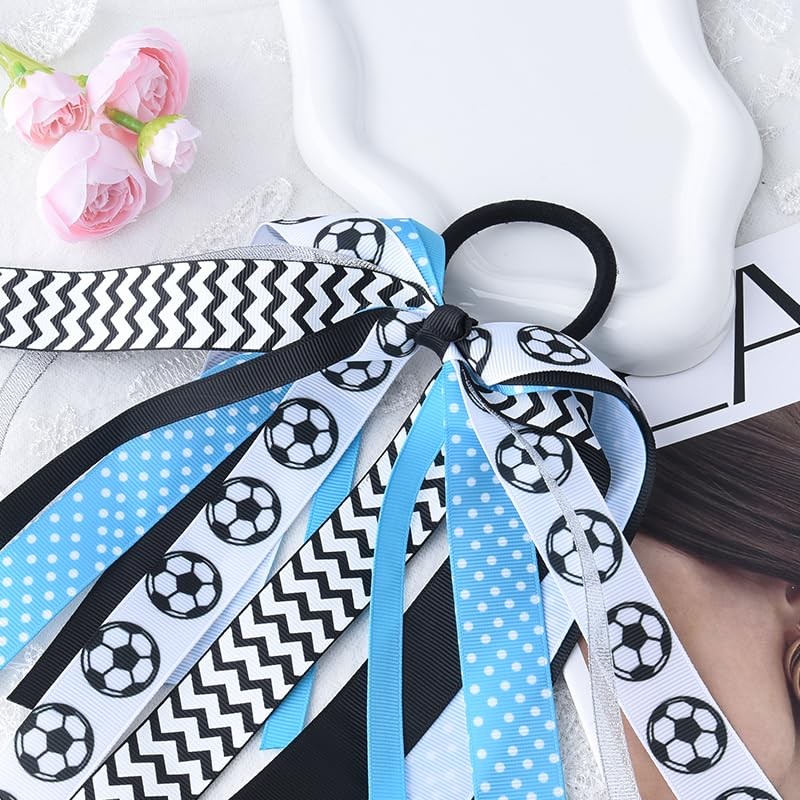 - Cute Soccer Hair Accessories for Girls: The soccer hair ribbons for girls are good tassel hair bows for girls, blue, black and white ribbon with rubber band, soccer accessories for girls, womens teen girls soccer ponytail holders for thin thick hair
