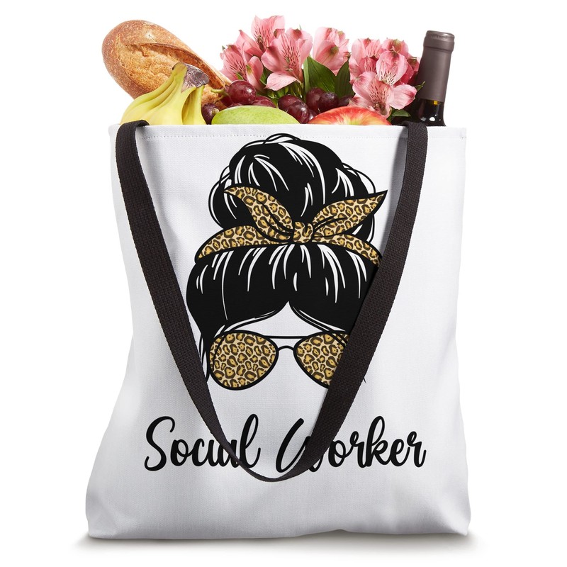 Social Worker Month Messy Hair Bun Leopard Healthcare Worker Tote Bag