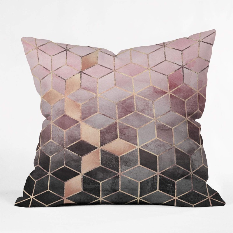 Society6 Elisabeth Fredrik Son Pink Grey Gradient Cubes 2 Indoor Throw Pillow...