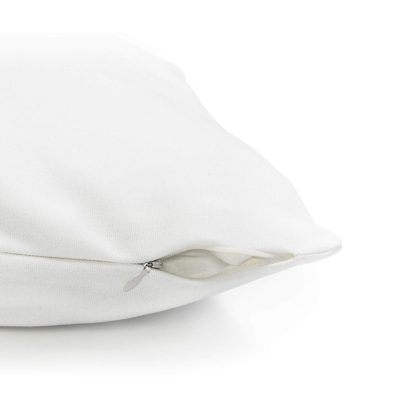 100 Percent Medium weight white woven polyester printed on front and back concealed zipper with bun insert premium polyester fill insert.