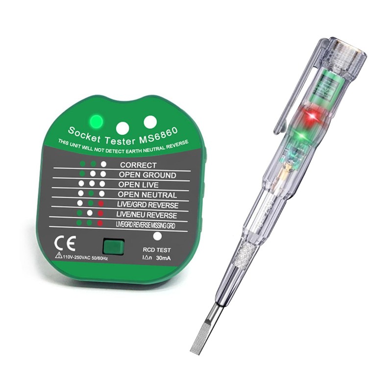 • 🌝 Comprehensive Test Kit: 1 pcs tester operating voltage 90-250V, RCD test is 30mA, accuracy ±(2.0%+2), 1 electric pen can test leakage test.