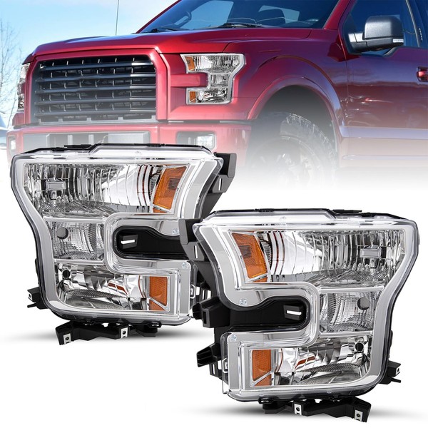 - 【FITMENT】Headlights Assembly Compatible with 2015-2017 Ford F-150. Do not fit models with LED or HID headlights. Bulbs are not included. High beam bulb type: 9005; low beam bulb type: H11; signal light: 3157A; side marker light: W5W. OEM Part Number: FL3Z13008A, FL3Z13008B; Partslink Number: FO2502335, FO2502344, FO2503335, FO2503344.