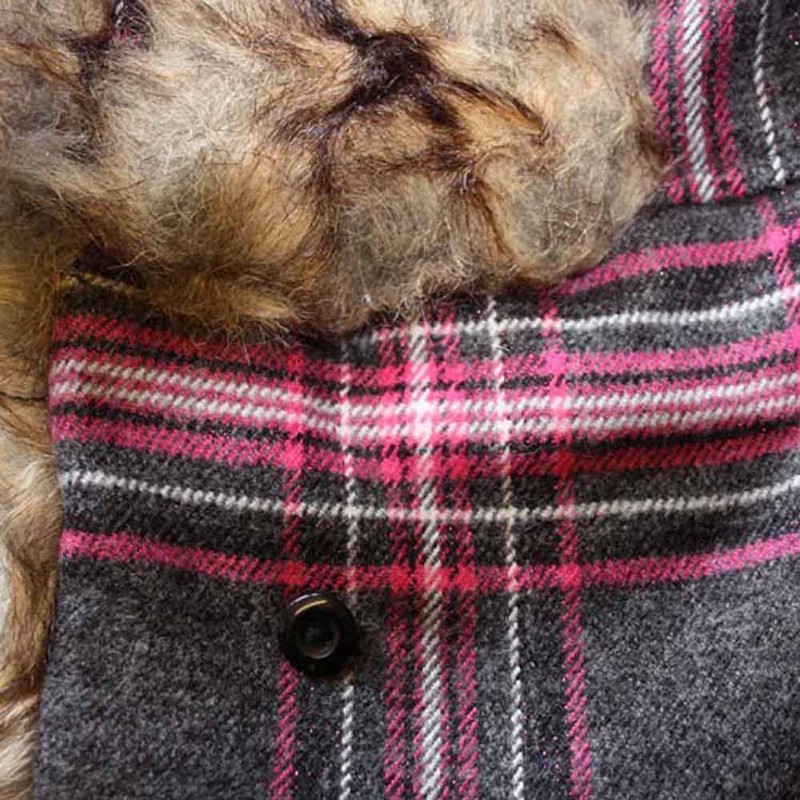 • Quality Printed Fabric Check Faux Fur and Quilted Satin Lining