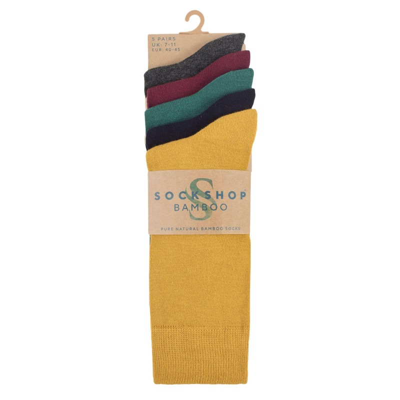 - 5 pair pack of men's bamboo socks available in assorted designs including plain, bright, spotty, striped and patterned