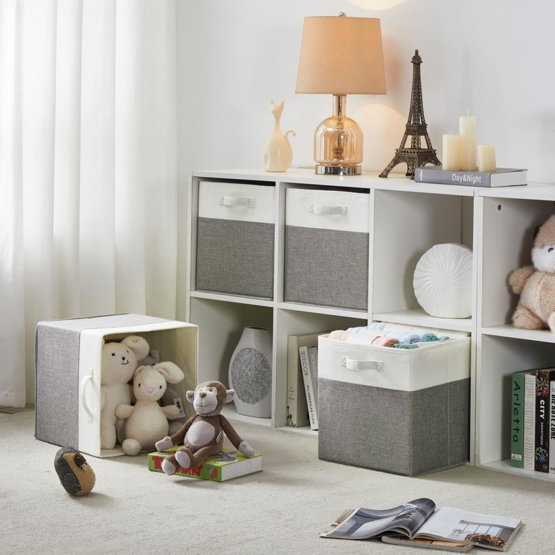 SOCOHOME Cube Storage Boxes,28x28x28cm Foldable Storage Baskets for Organizing Clothes Shelf Nursery Closet(Grey/White, Set of 4)
