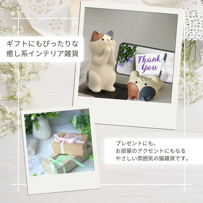- 【スマホ・ペン・名刺も置ける多機能スタンド】 仰向けポーズの三毛猫スタンドは、スマートフォンをしっかり支えるだけでなく、ペンや名刺、メモなどを置ける多機能タイプ。縦置き・横置きどちらにも対応し、デスク周りの小物整理にも活躍します。愛らしさと実用性を兼ね備えた便利なスタンドです。