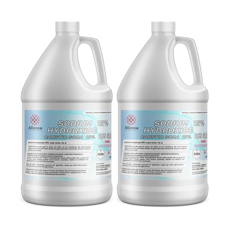 Sodium Hydroxide 25% ACS Grade - 2 Gallons - Dual-Pack Chemical for Industrial pH Control, Cleaning, and Neutralization