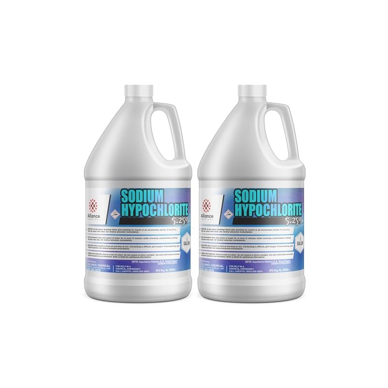 Sodium Hypochlorite 5.25% - 2 Gallons – for Industrial Cleaning, Oxidation, Chemical Processing, Stain Removal, and Surface Preparation