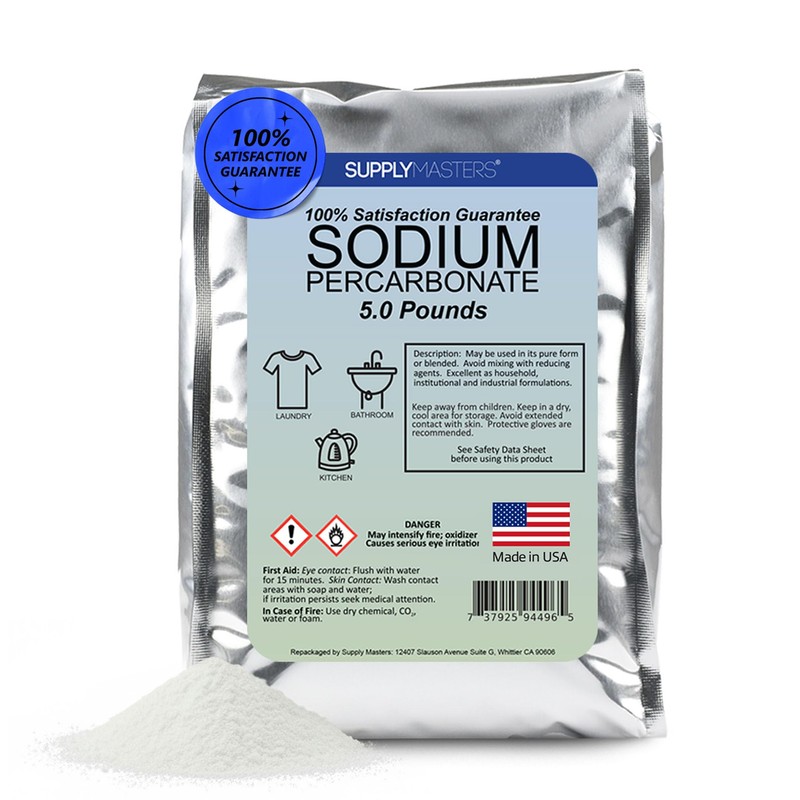 SupplyMasters Sodium Percarbonate Powder 5 lbs Pack - Oxygen Source & Bleach Alternative - Clothes Brightener, Laundry Detergent & Stain Remover