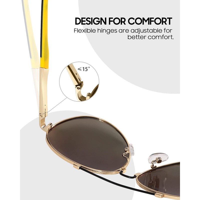 SODQW Polarised Sunglasses Men Women Metal Frame Glasses with UV400 Protection Sunglasses, Yellow frame - brown lenses with colour gradient