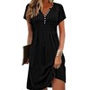 Soesdemo Womens Black Summer Dresses Short Rolled Sleeve Pleated Button Down V Neck Casual A Line Beach Vacation Pools Swimsuit Cover Up Shift Sundresses with Pockets
