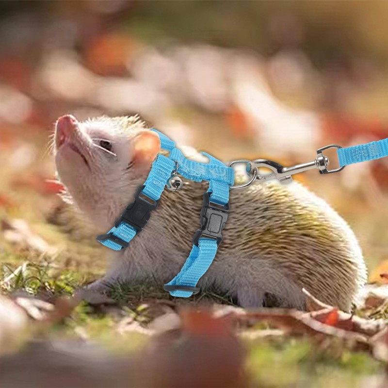 Soezy Adjustable Hedgehog Harness for Training Playing Traction Rope Small Animal Pet Outdoor Play (Blue, Small)