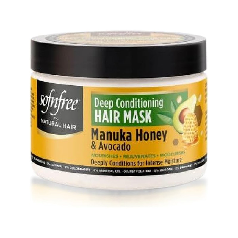 SOF N' FREE Manuka Honey & Avocado Deep Conditioning Hair Mask for Curly Hair, Moisturizing and Shine Enhancing Hair Treatment - 11 fl oz