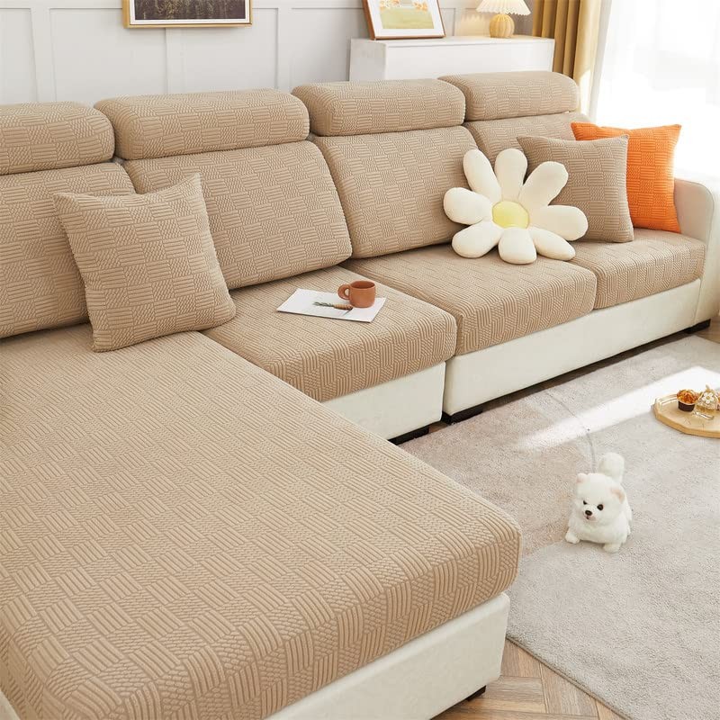 Sofa Seat Cushion Covers – Universal Stretch Sofa Protective Covers, Couch Seat Cover, L-Shape, Soft Sofa Seat Cover, Couch Chaise Covers, Sofa Cushion Protector Covers (Light Coffee Cookie)