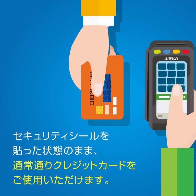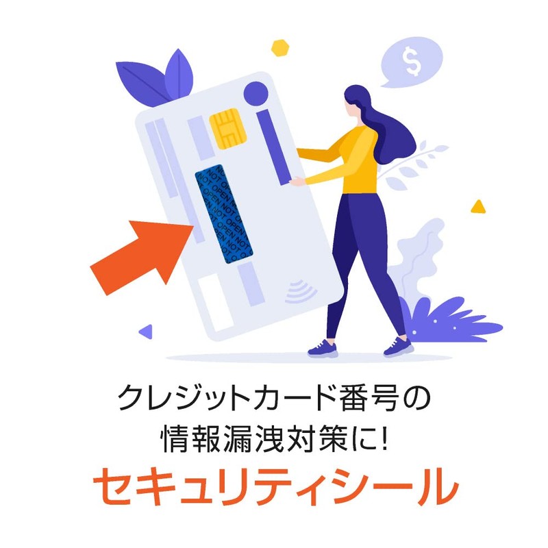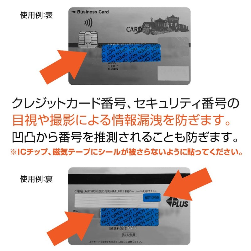 Credit card security seal (5 sheets) 1 sheet: 2 large credit card number stickers (large) 1 security code sticker (small) Sticker size: (Large) 0.5 x 1.6 inches (12 x 40 mm) (small) 0.2 x 0.5 inches (6 x 12 mm)