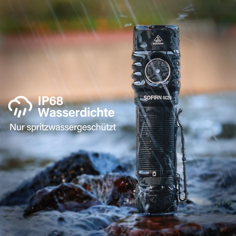 • Super bright LED torch: the Sofirn SC29 is an LED torch with high lumens, the maximum output is 3000 lumens, the range is up to 124 metres. Perfect for use at home and outdoors to illuminate dark areas.