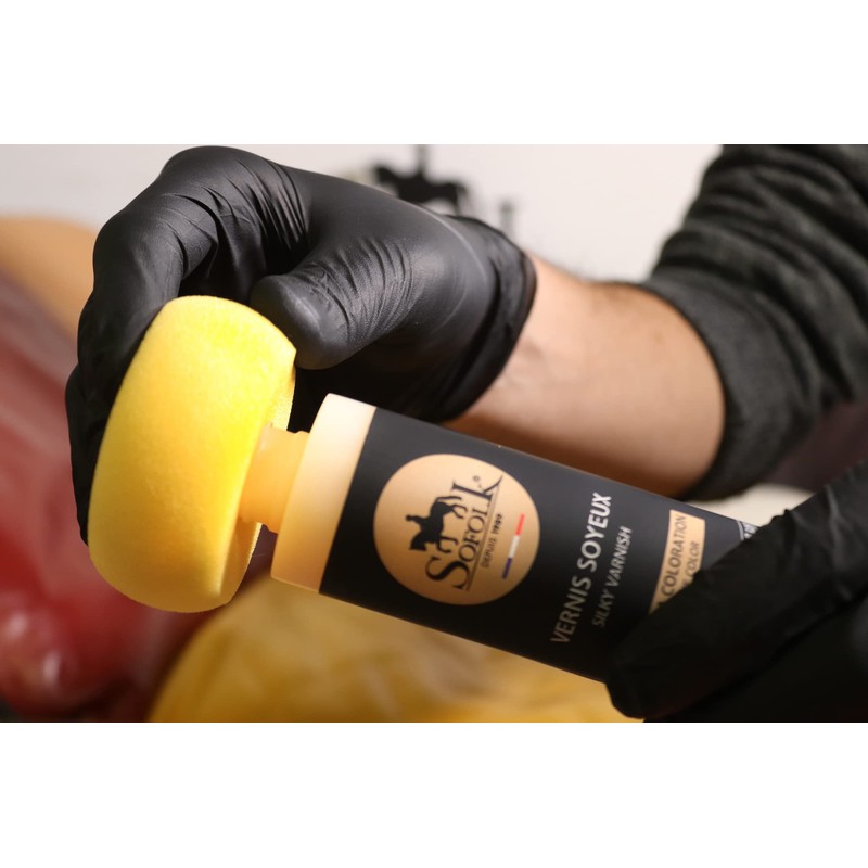 Farblos und erhältlich in matter, satinierter oder glänzender Oberfläche. Unser seidiger Lack verleiht dem Leder eine angenehme Haptik.