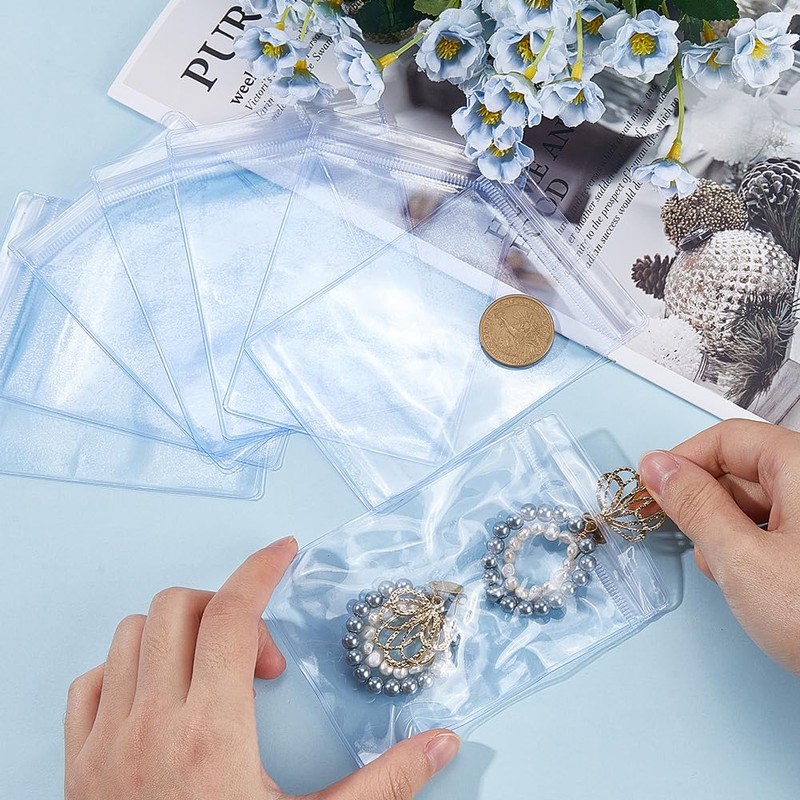 - Pack of 100 PVC jewellery bags: you will receive 100 transparent plastic bags for jewellery storage with zip. The resealable zip design allows repeated use of the bags, provides comfort when organising and storing items