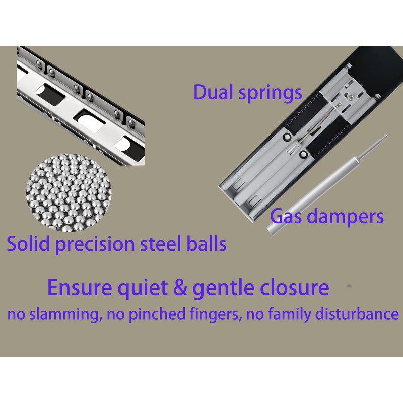 - Smooth & Silent Soft Close–Enjoy a peaceful home environment with every drawer movement.Integrated dual-spring soft close dampers ensure a quiet soft close, reducing noise,protecting your furniture for a serene and harmonious home.