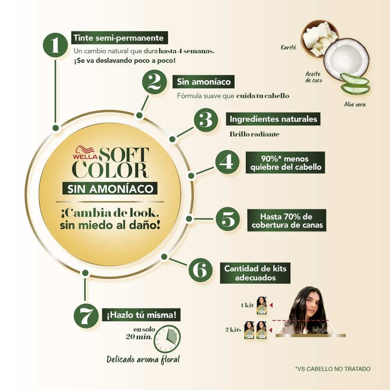 - Coloración sin amoníaco y con ingredientes naturales