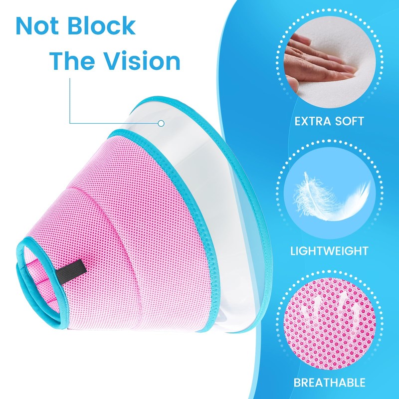 - 【BREATHABLE 3D STRUCTURE】- The soft cone for dogs is made of Sandwich Mesh. Thanks to its unique 3D structure, the dog cone is breathable and elastic, not only lightweight but also easy to clean. Available in 8 different sizes for a perfect fit.