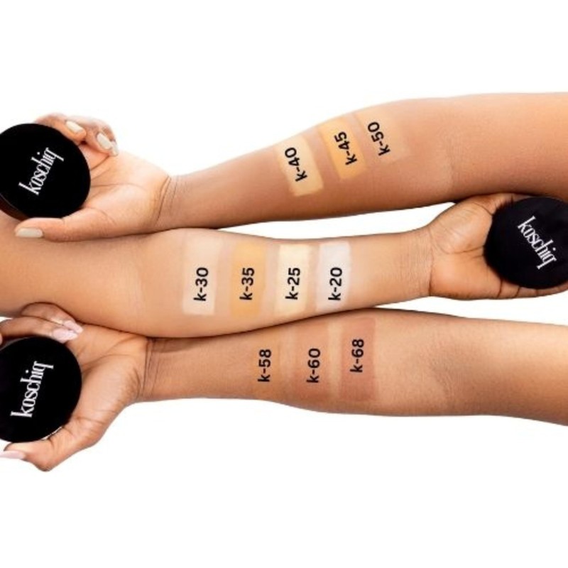 • KOSCHIQ COSMETICS: provides you with a soft matte powder plus foundation that can be used as a foundation and also on top of a foundation , leaving the skin younger and fresher all day, everyday.