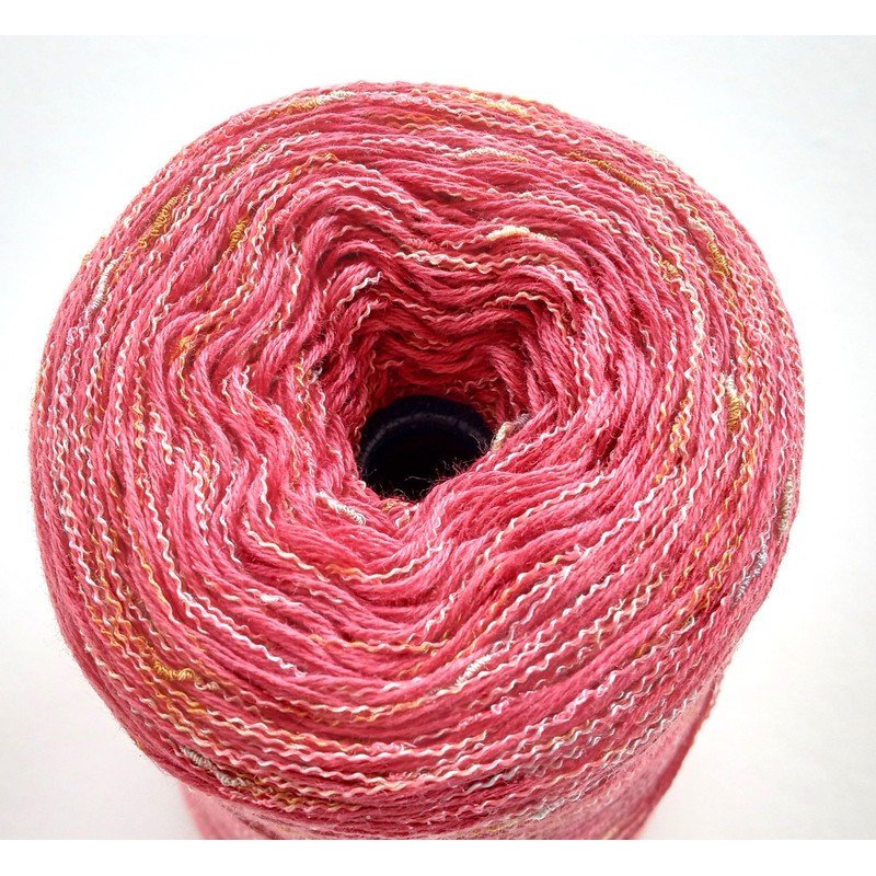 - One Cone, cotton yarn loosely plied with a fancy swiggle boucle rayon strand. EIGHT OUNCES.