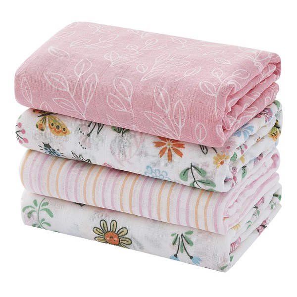 Softan Swaddle Blankets for Baby Girls & Boys Gift, Large 47X47 inches Receiving Blankets for Newborn,4 Pack Flowers and Butterflies