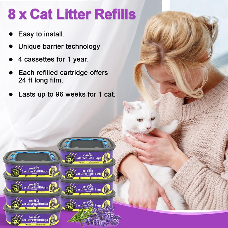 SOHBCLE Cat Litter Refill Bags|24FT 8-Pack|Odor Control Cat Litter Bags|Compatible with Pet Genie Refills Standard,Plus,XL+ and XL Pail Refills|Lasts Up to 24 Months