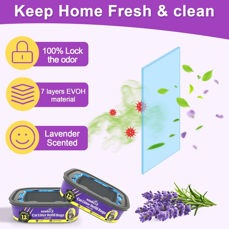 - Large Capacity:Each of our refill box cat litter refill bags is 24 feet long and can last a cat a long time. Continuous use for nearly 12 weeks keeps your home clean and odor-free for a long time. Large capacity design can save you a lot of money.