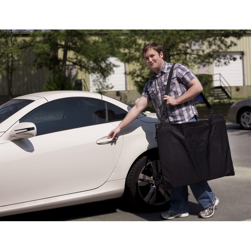 - Heavy-duty, water-resistant black nylon portfolio Easy-grip handle & adjustable shoulder strap