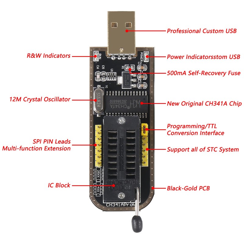 - The main purpose of the CH341A Programmer is to back up, erase, program, calibrate and other actions on various software.