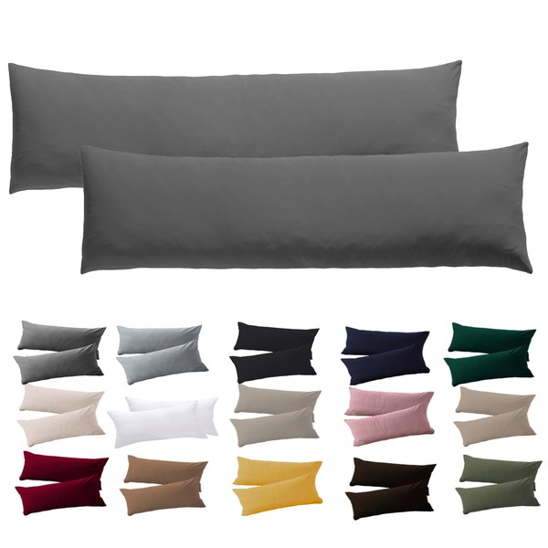 Soifox Side Sleeper Pillowcases, 40 x 145 cm, Set of 2, Anthracite, with Zip, 100% Microfiber, Resistant and Hypoallergenic