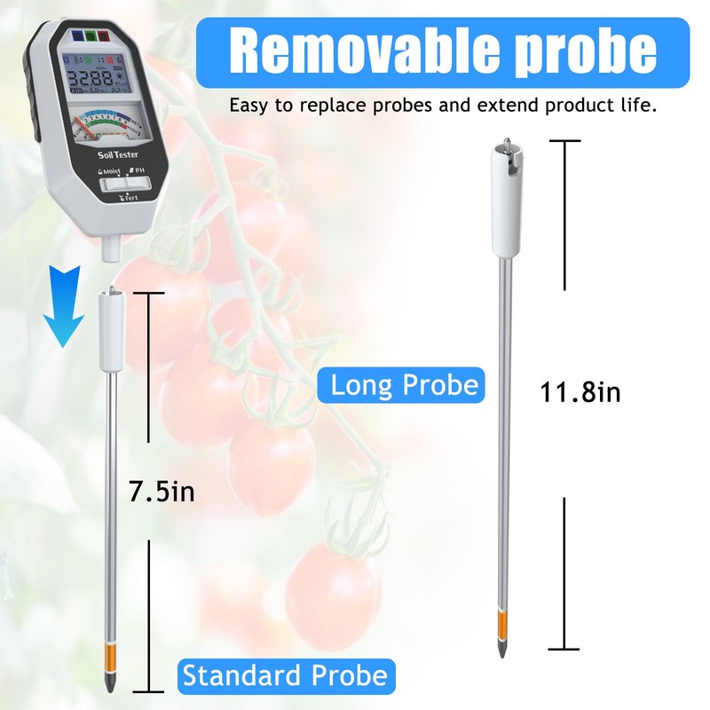 - LONG PROBE - The single probe less hurts the roots. The probe is upgraded and durable, Replaceable probes using an innovative removable design. Prevents loss of sensitivity and incorrect values due to prolonged use.