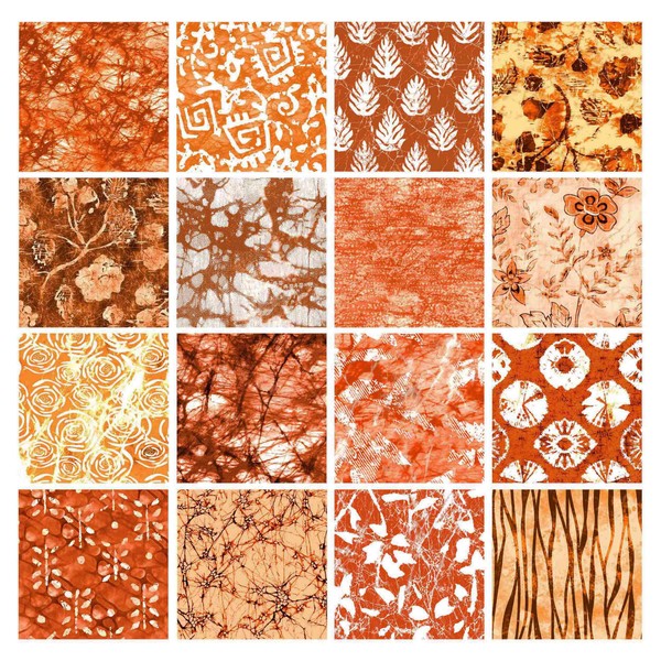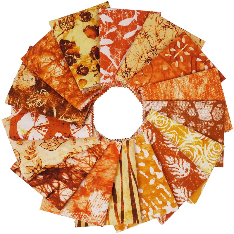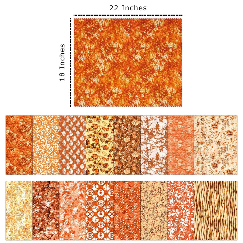 Soimoi 16 Pc Fat Quarter Bundle, Batik Print 18"x 22" DIY Patchwork- 100% Cotton Pre-Cut Quilting Fabric Orange