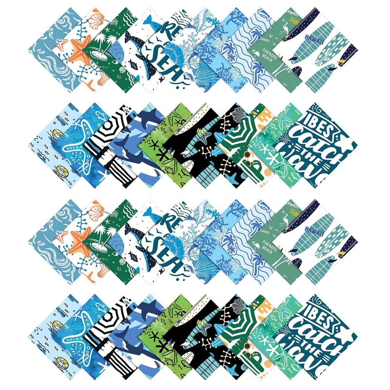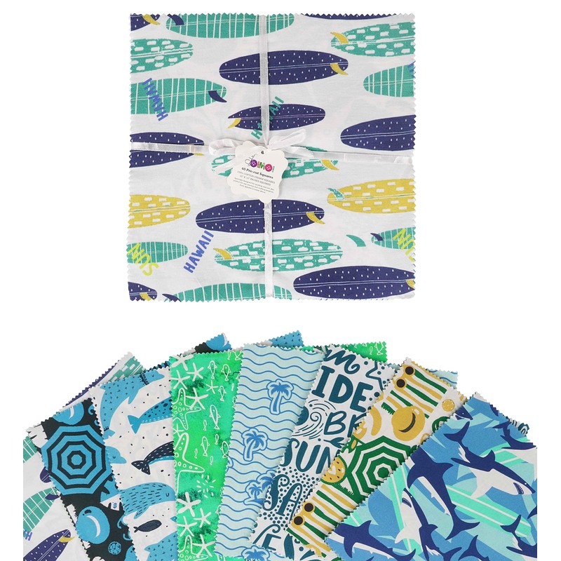 Soimoi Beach Print Precut 10-inch Cotton Fabric Quilting Squares Charm Pack DIY Patchwork Sewing Craft-Light Green