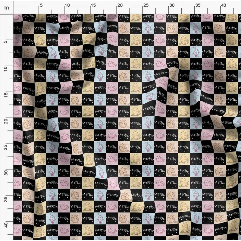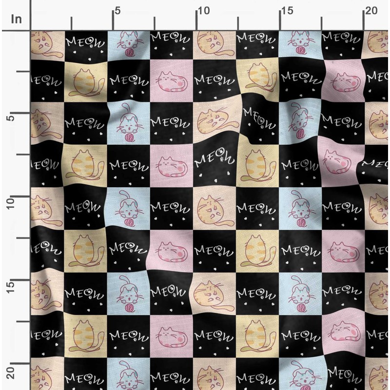 Soimoi Black Cotton Canvas Fabric Text & Cat Animal Print Fabric by metre 56 Inch Wide