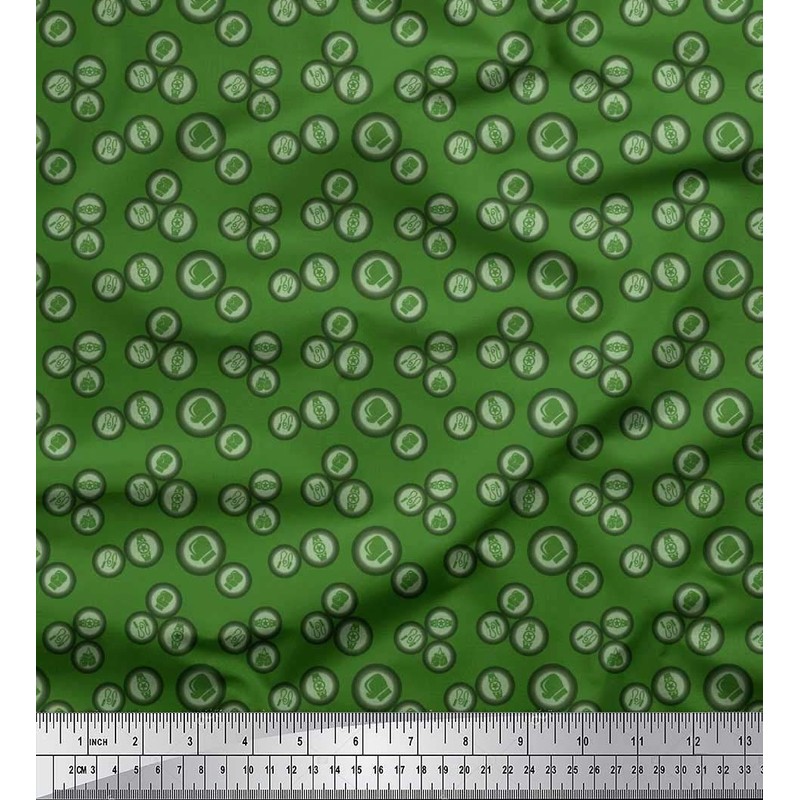 Soimoi Green Rayon Crepe Fabric Watch,Skipping Rope & Boxing Gloves Sports Printed Fabric 1 metre 46 Inch Wide