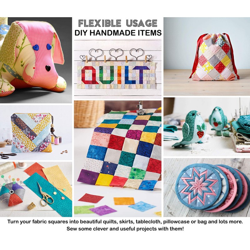 - ✅ FLEXIBLE USAGE: Turn your fabric squares into beautiful quilts, skirts, tablecloths, pillowcases or bag,s and lots more. Sew some innovative and useful projects with them! ... These precut fabric squares can surely inspire you to create beautiful items.