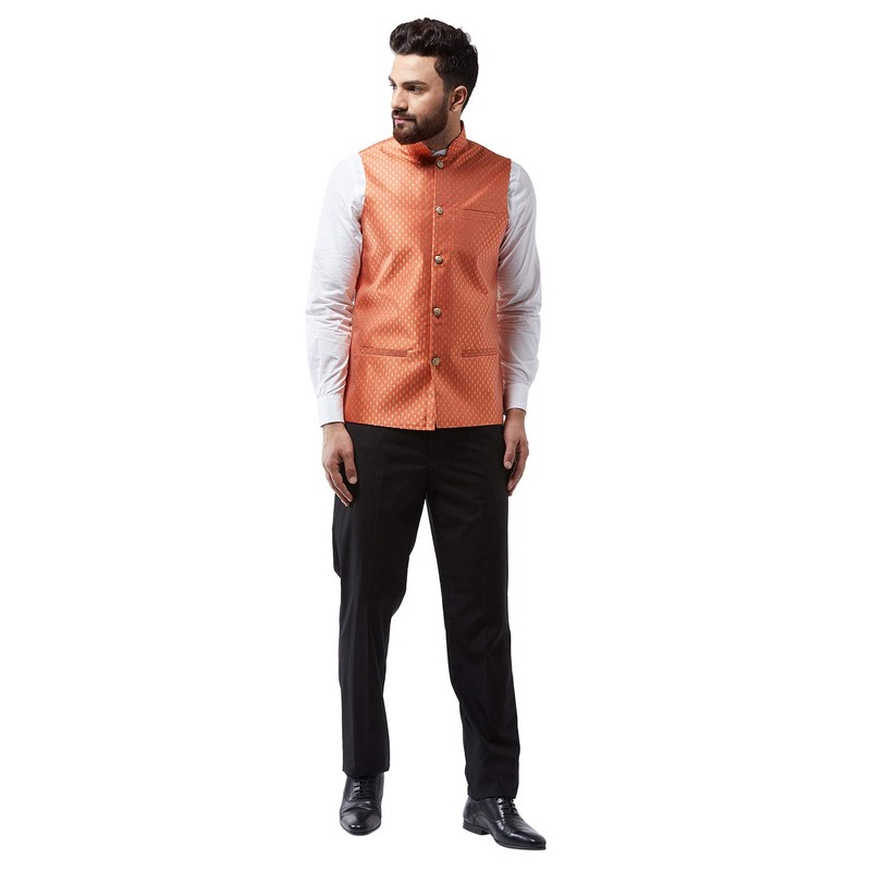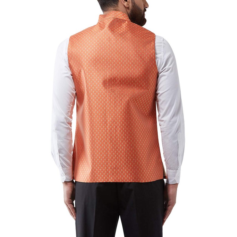 Sojanya (Since 1958 Men'S Silk Blend Orange & Gold Self Design Nehru Jacket, ...