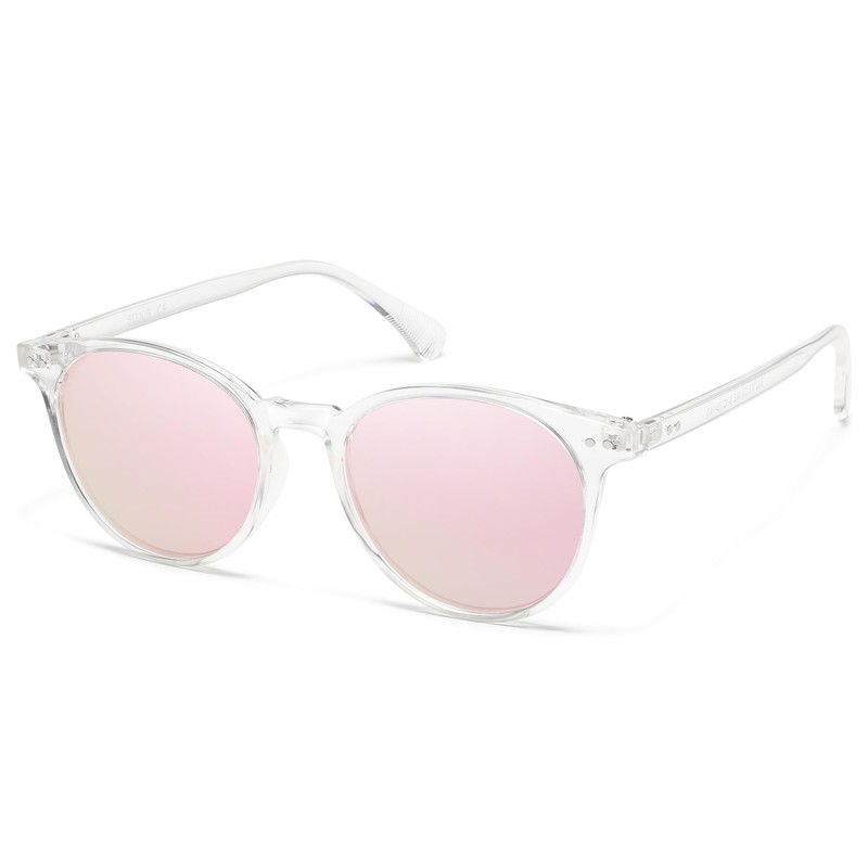 SOJOS SJ2113 - anteojos de sol polarizadas clásicas redondas para mujeres y hombres, estilo clásico UV400, Claro/rosa, Small