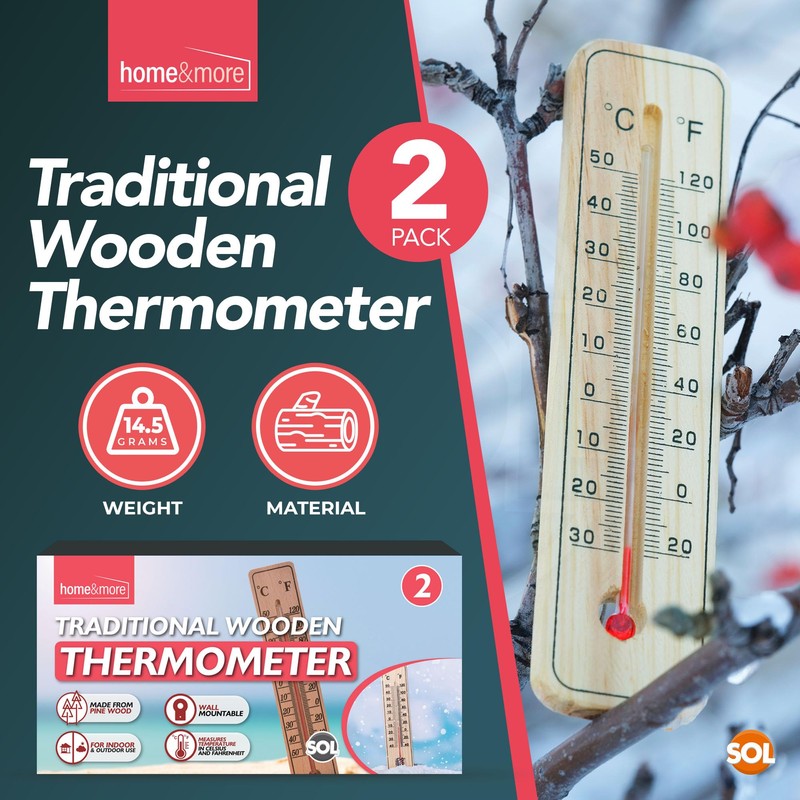SOL 2pk Traditional Wooden Thermometer Room Temperature for Home, Office, Nursery, Greenhouse Thermometer Indoor and Outdoor Thermometer Wall Thermometer Room Temperature Garden Thermometer Outdoor