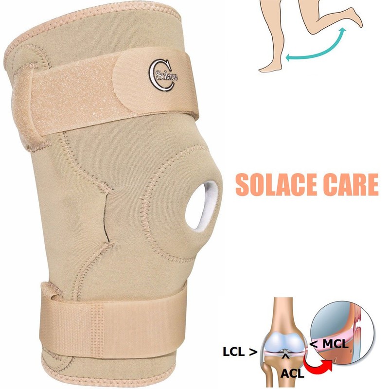 Solace Care Stabilized Hinged Open Neoprene Knee Support | For Injured Arthritic Knees Strains Sprains Pain Instability ACL Meniscus Tear